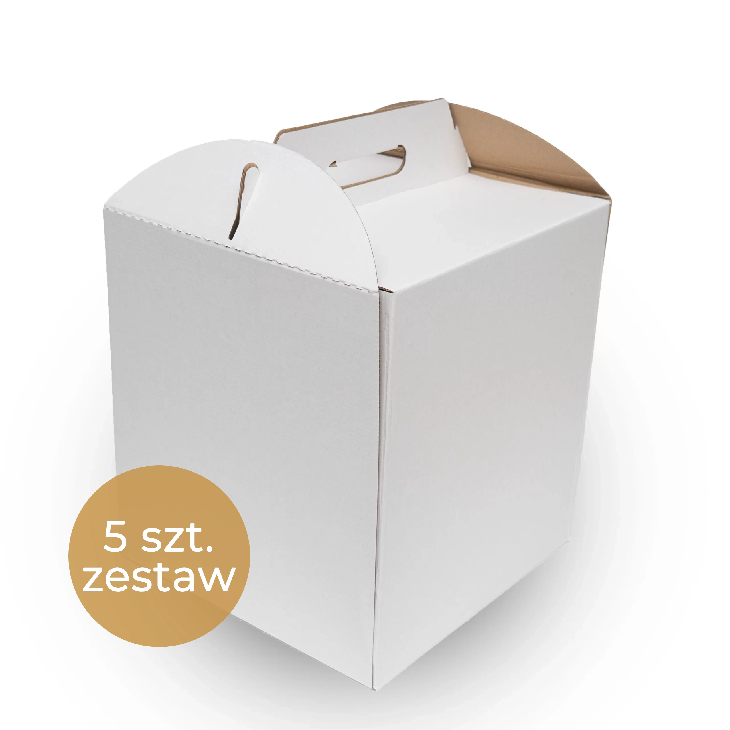Ten wysoki karton na tort o wymiarach 31x31x31 cm jest idealny do przechowywania i transportu dużych tortów. Wykonany z wysokiej jakości tektury w kolorze białym, jest trwały i stabilny. Jego neutralny kolor podkreśla wygląd Twoich wypieków, a duże wymiary pozwalają na bezpieczne przechowywanie i transport nawet najbardziej okazałych tortów.